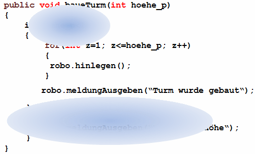 Ändere die Methode baueTurm() so ab, dass bei einer eingegebenen Höhe kleiner als 1 die Meldung "Ungültige Höhe eingegeben" angezeigt wird. Ansonsten arbeitet sie wie bisher.